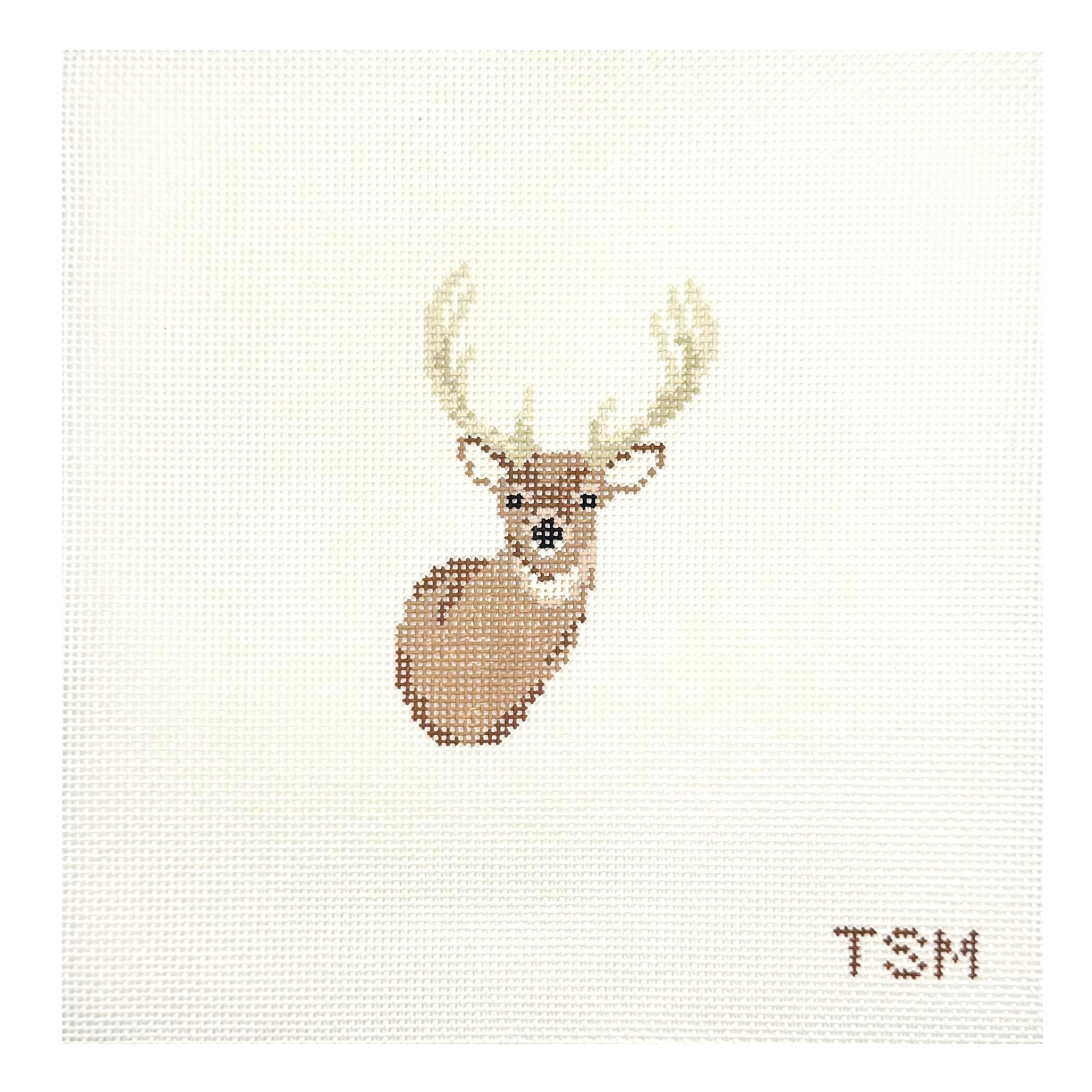 Painted on high-quality mono canvas, this piece offers plenty of room for creative stitching—add texture to the fur, dimension to the antlers, or personalize with your favorite background stitches.